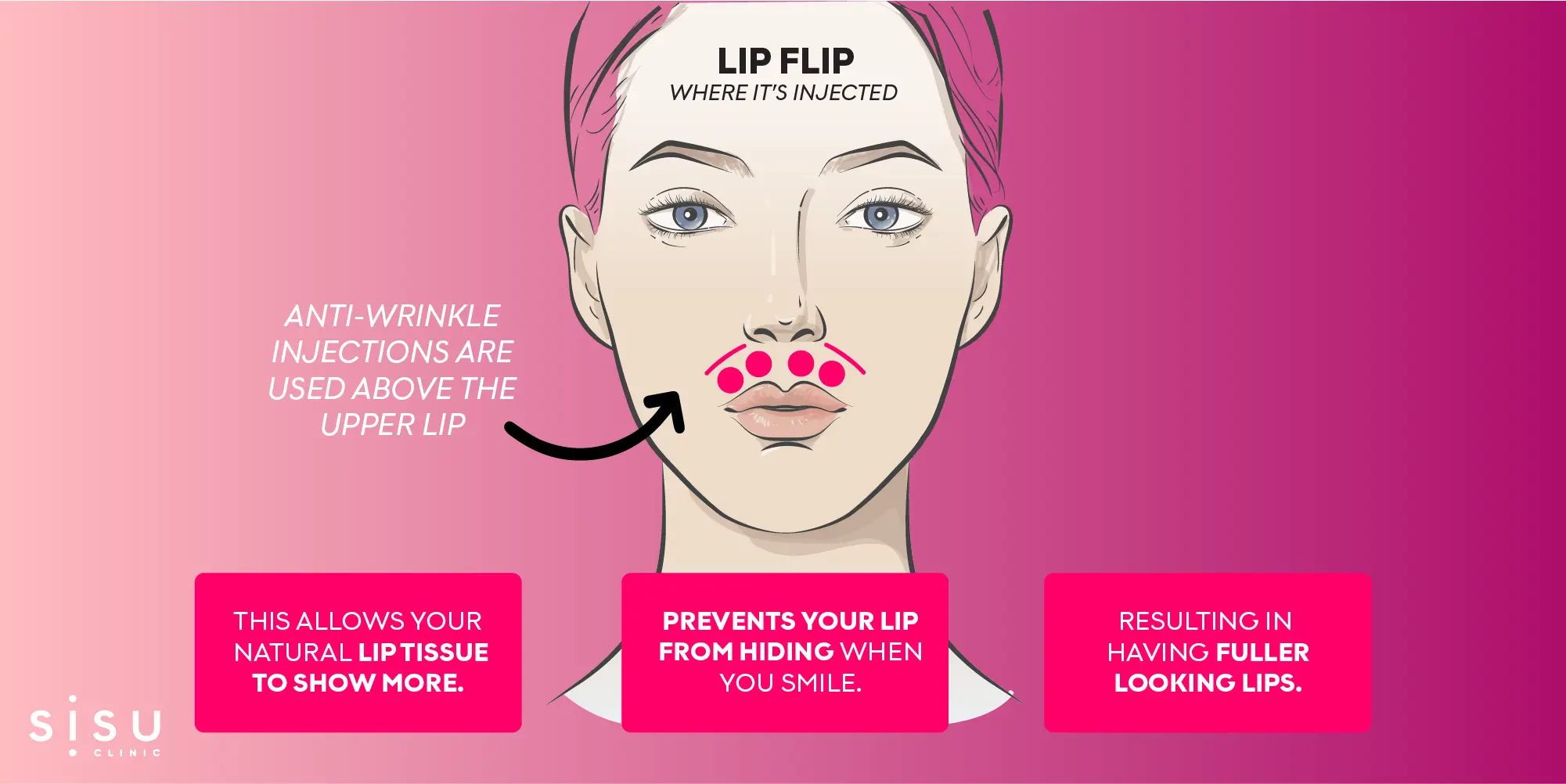 A Lip Flip is a non-invasive cosmetic treatment that uses a small amount of anti-wrinkle injections (such as Botox) around the muscles of the upper lip. The purpose isn’t to add volume, but rather to relax the muscles so that the upper lip gently “flips” outward. This makes more of the pink part of your lip visible, giving the appearance of slightly fuller, more defined lips—without adding actual size.